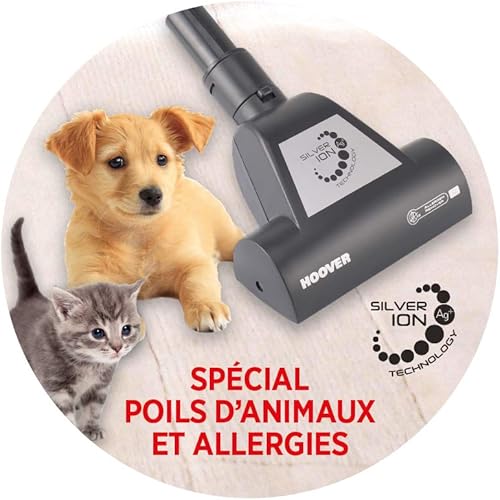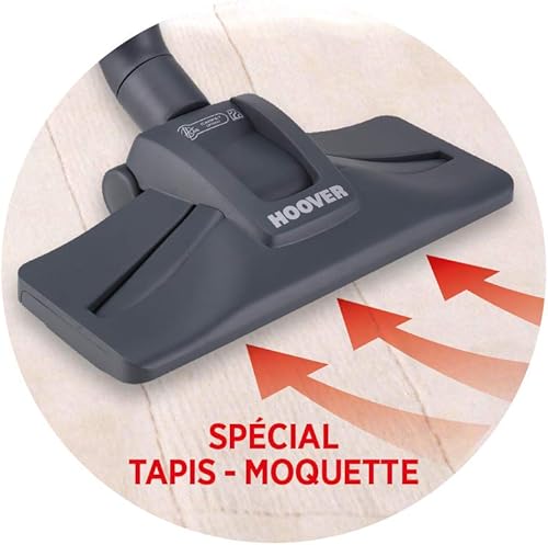 Hoover TE70_TE69 Aspirateur Traineau Sac, Puissant, Silencieux 69dB, Grande Capacité 3,5L, Rayon d'action 9m, Filtre EPA lavable, Brosse Parquet + MiniTurbo, moquette / Ions d'argent