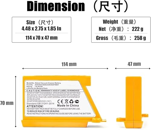 OJAQYUYA Batterie 14,4 V 5000 MAh, Compatible avec Les Aspirateurs Robots LG VR6270LVB, VR6270LVMB, VR63455LV, VR6370LVM, VR64604LV(VR-3500mAh)