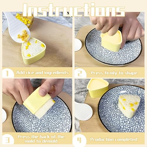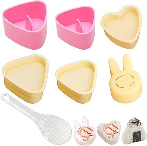 yisight Kit de 6 Moules à Sushi Onigiri, moule onigiri, moule onigiri triangle, Facile à Nettoyer et Réutilisable, Inclus une Cuillère à Riz Antiadhésive, pour faire des sushis