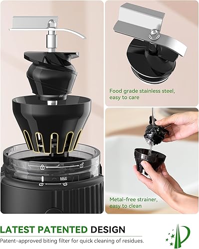 ACOQOOS Centrifugeuse Extracteur de Jus 200 W, Extracteur de Jus de Fruits et Légumes, Extracteur avec fonction de mastication inversée et 2 tasses, ouverture de 110 mm, noir