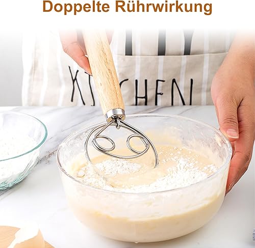 Batte à œufs batte à pain batteur à main en acier inoxydable batte à pain batteur danois pour la maison, la boulangerie pour battre les œufs, pétrir la pâte, faire du pain et des pâtisseries
