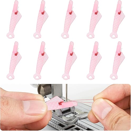 10pcs Enfile Aiguille Machine à Coudre à Bouche de Poisson, Nouveau 2024 Enfile-Aiguille de Type Poisson Automatique Enfile Aiguille à Coudre pour l'Artisanat de Bricolage Fournitures(Rose)