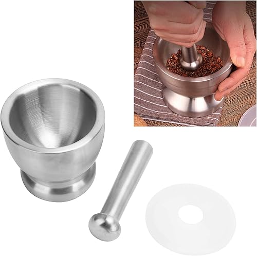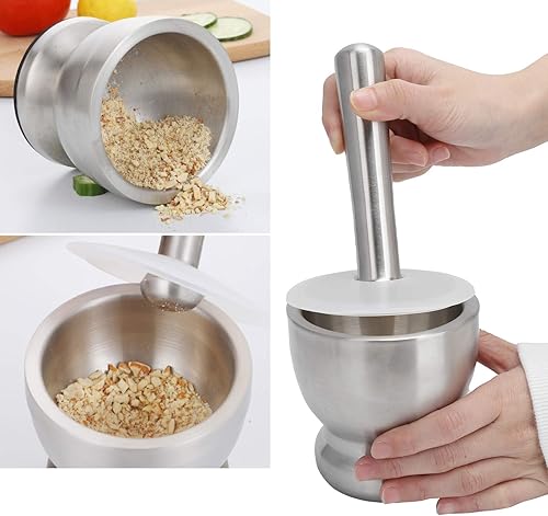 Alvinlite Ensembles de mortier et Pilon Concasseur de Bol de Pilon de mortier en Acier avec Couvercle pour concasser Le Bol de mélange de broyage
