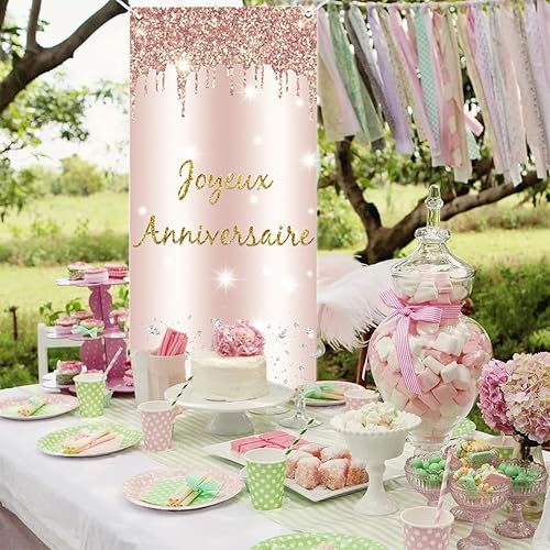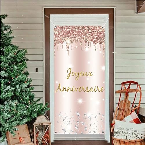 Joyeux Anniversaire Bannière en Or Rose, Décoration de Fête d'anniversaire de Bannière de porte, Banderoles pour Fêtes Anniversaire de la femme, Signe de Bienvenue Fête d'anniversaire