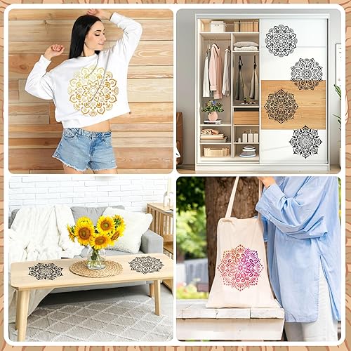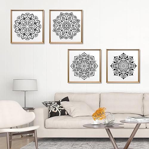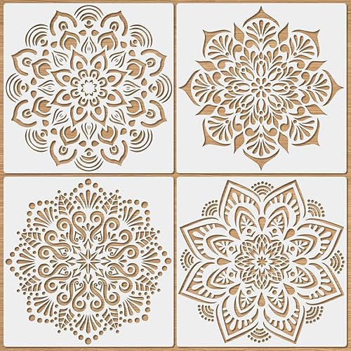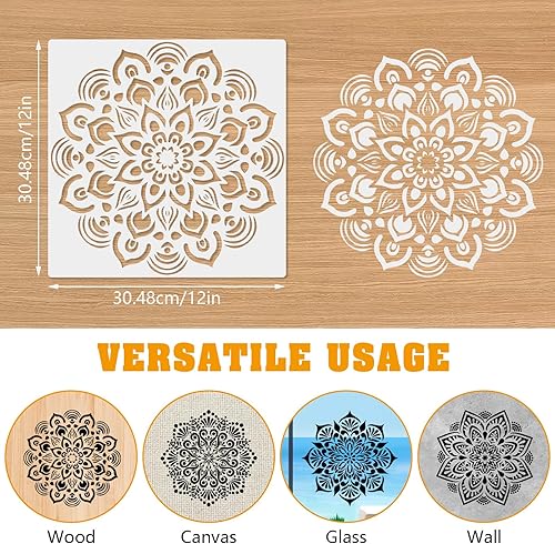 MWOOT 4 Pièces 12IN Grand Mandala Pochoirs pour Peinture, Stencils for Painting Réutilisables, Pochoir Dessin Mural a Peindre, Pochoir Fleur Bricolage Toile Fenêtres Planchers L'art Mural Décoration