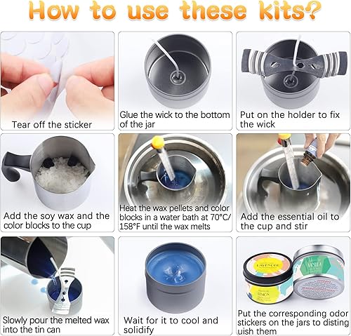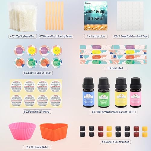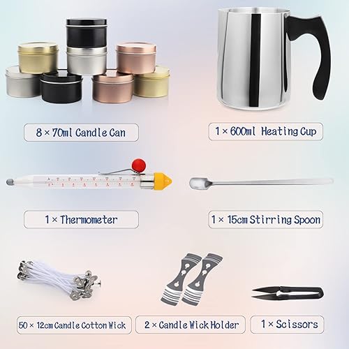 Suzzam Kit Bougie a Faire Soi Meme Adulte, Kit de fabrication de bougies avec cire de soja et accessoires pour la fabrication facile de bougies parfumées colorées