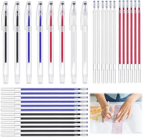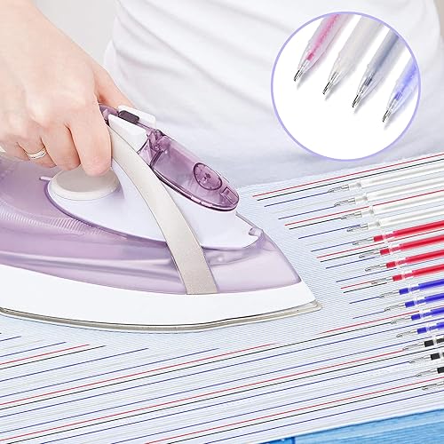 Couture Marquage en Tissu Effaçable 4 Couleurs Marquage à la Chaleur en Tissu Stylos Effaçables à la Chaleur avec 8 Coquille du Stylo et 32 Recharges Remplaçables pour Tailleurs Couture 40 Pièces