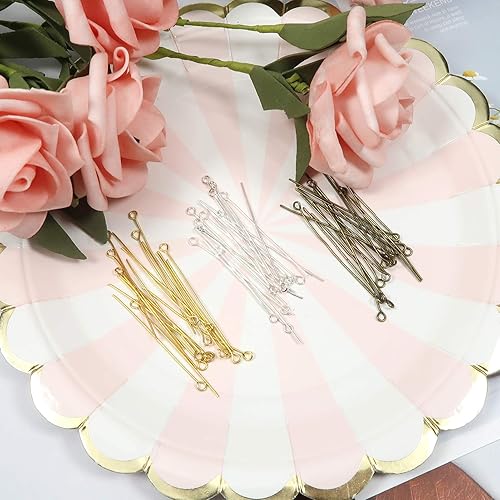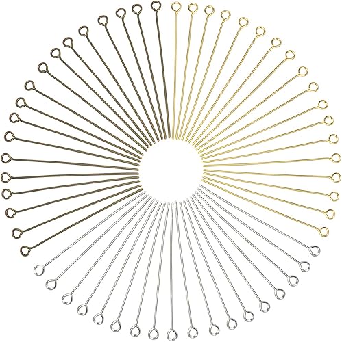 TOAOB 300pcs Aiguilles Clous Tiges à Oillet Bronze Argenté Doré 45mm pour Creation de Bijoux