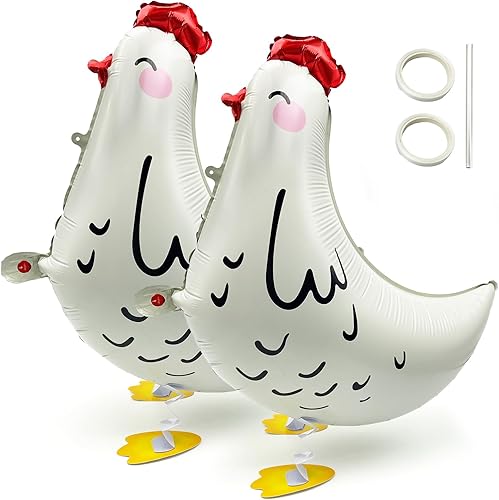 TUONYIS Lot de 2 ballons gonflables en forme de coq pour enterrement de vie de jeune fille, décoration de fête d'anniversaire, fête prénatale, fournitures de fête (blanc)