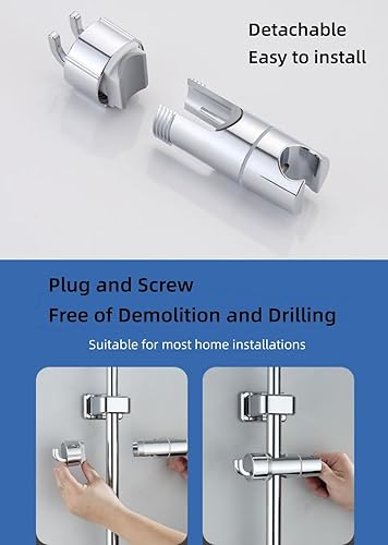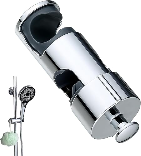 WUBAYI Support de pommeau de douche avec 2 crochets, support de douche universel pour 16-27 mm, chromé + ABS, support de pommeau de douche de rechange, installation facile pour barre coulissante