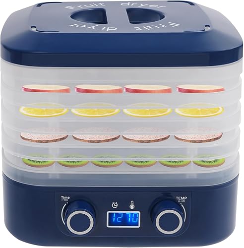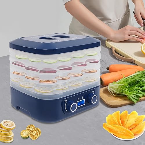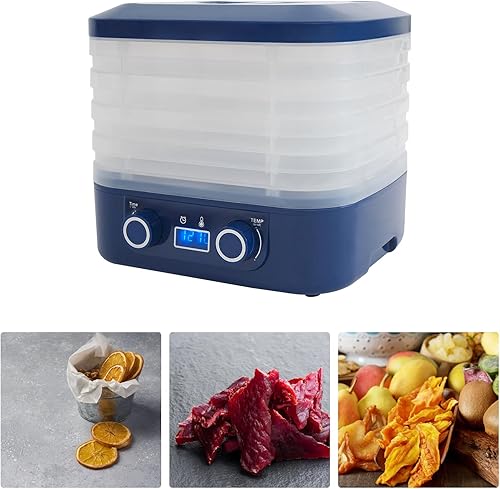 Mini déshydrateur de cuisine 160 W avec 5 plateaux et 5 sacs de conservation scellés, affichage LED, 35-70 °C, minuterie 48 h, déshydrateur de fruits pour figues, citrons, fraises, bœuf, bleu