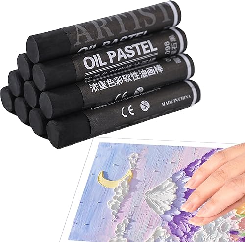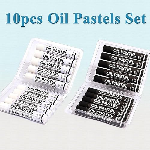 Lot de 10 pastels à l'huile ronds noirs doux pour enfants - Craie lisse - Couleurs vives intenses - Fournitures d'art non toxiques pour le dessin, le mélange de graffiti pour artistes débutants
