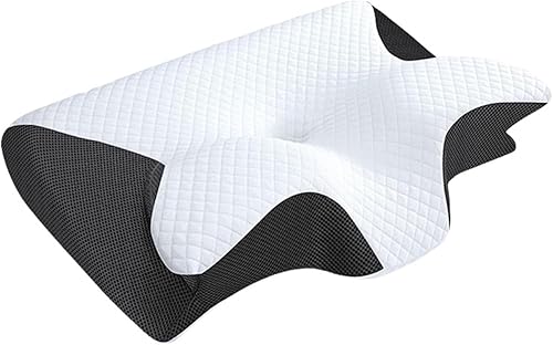 Oreiller Cervical Orthopédique - Ergonomique Pour Le Sommeil Latéral, De Soutien En Mousse À Mémoire Forme Les Douleurs Cervicales Et Épaules Lit Avec Taie D'oreiller (Black,Pillows & pillowcases)