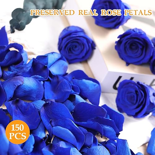Véritables pétales de rose séchés, préservés naturellement, pour décoration de mariage, douche nuptiale, fiançailles, soirées romantiques et décoration de table - Confettis bleus
