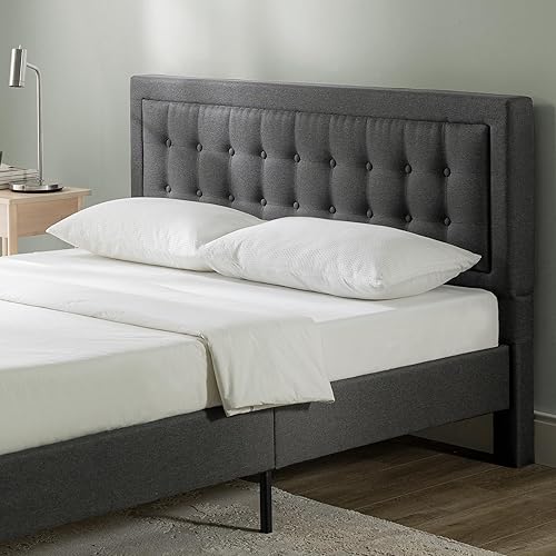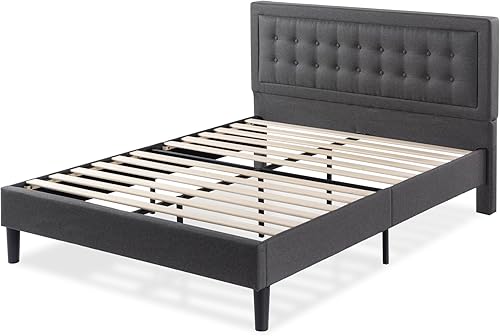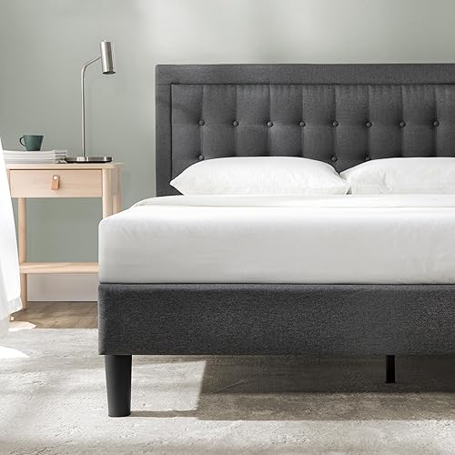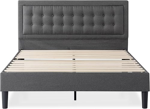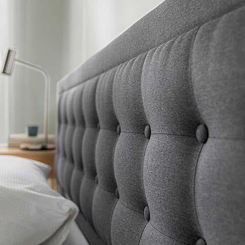 Zinus Dachelle Lit 160x200 cm - Hauteur du cadre de lit 35 cm - Cadre de lit plate-forme rembourré avec support de lattes en bois - Gris