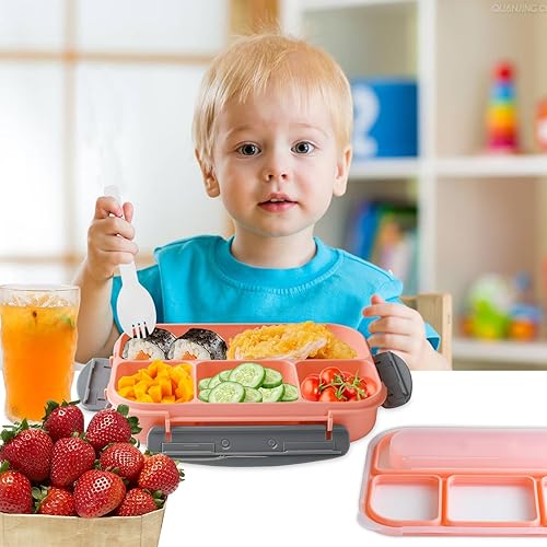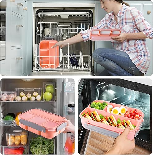 anyìshwu 1300ml Lunchbox avec 4 Compartiments, Anti-Fuite Bento Lunch Box avec Lunch Bag et Couverts, Boîtes Bento pour Enfants, Adultes, Convient Pour Micro-Onde Lave-Vaisselle (Rose)
