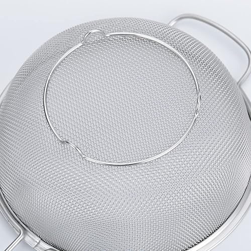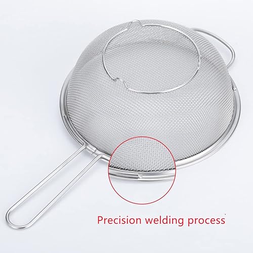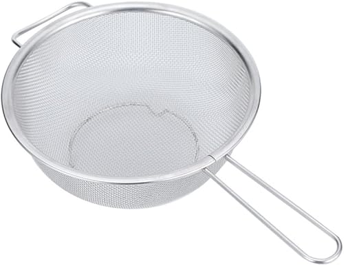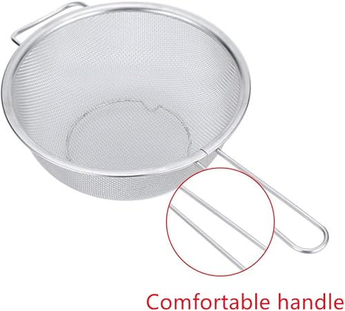 Lin's Wood Grande passoire en Acier Inoxydable à Mailles Fines avec poignée Robuste et Base – 19,5 cm de diamètre (Acier Inoxydable)