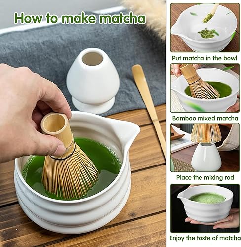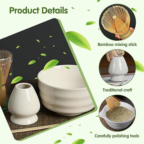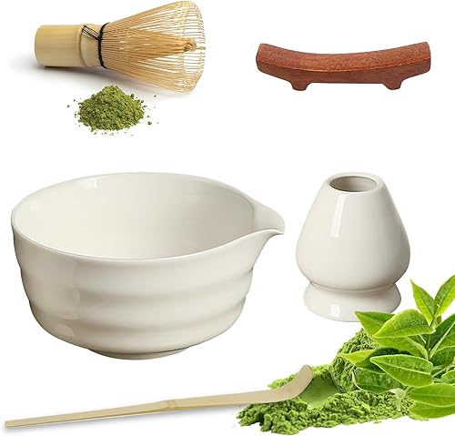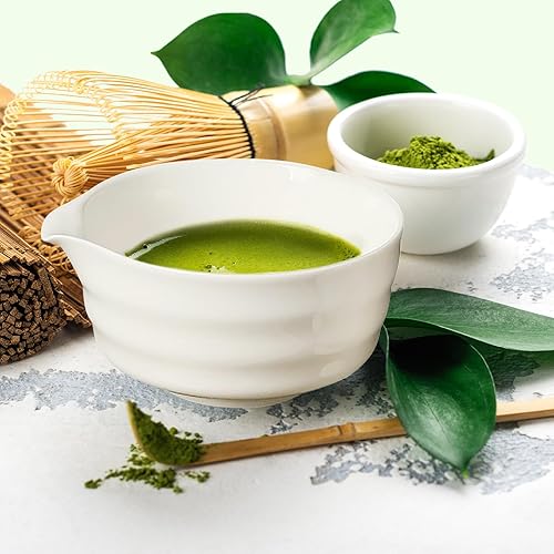 Lot de 5 fouets à matcha avec bec verseur, fouet en bambou, fouet à matcha pour machine à matcha, cadeau pour les amateurs de matcha (blanc)