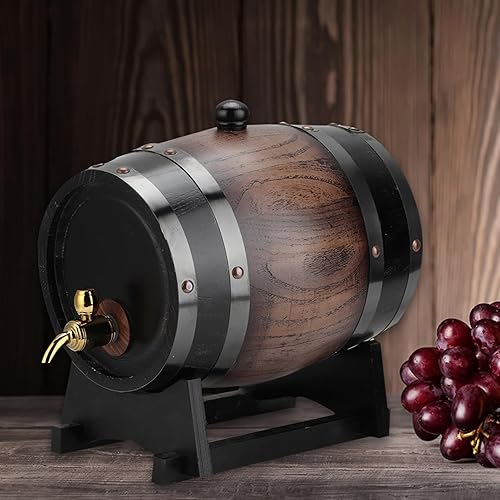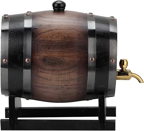 Tonneau à Vin Rouge en Chêne Noir rayé Vintage 3 L, Accessoires pour le Vin Vintage avec Robinet, Tonneau à Vin, Récipient à Brandy, Seau à Vin, Tonneau à Vin en Bois pour Whisky