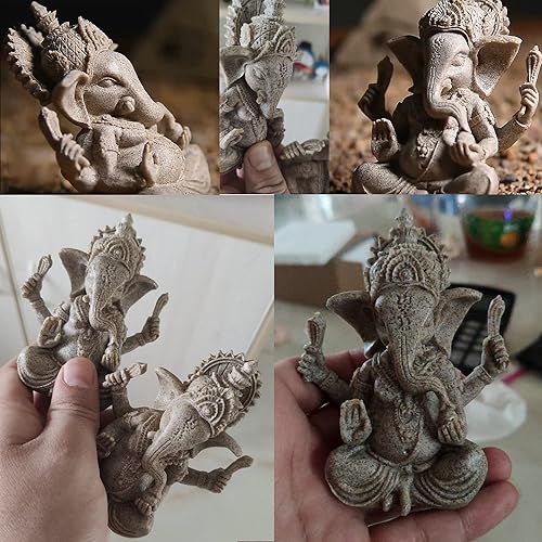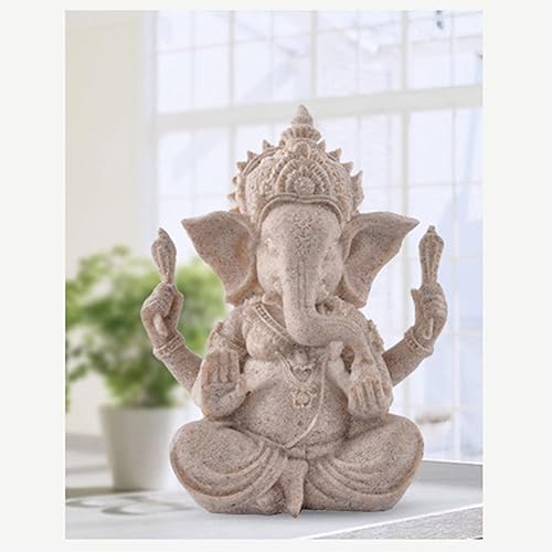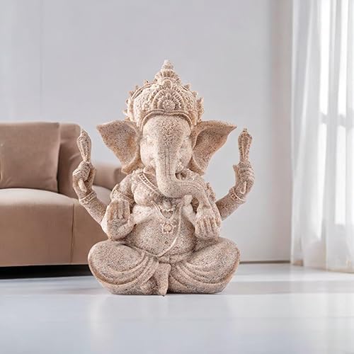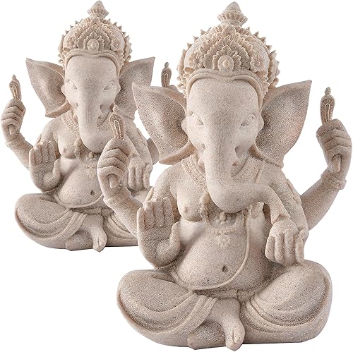 MINGZE 2 Pièces Statue de Dieu Éléphant, Grès Résine Ganesha Indienen Traditionnelle Figurine Sculpture de Bouddha Artisant Décoration de Loisirs Créatifs Bureau Chambre Maison Cadeaux