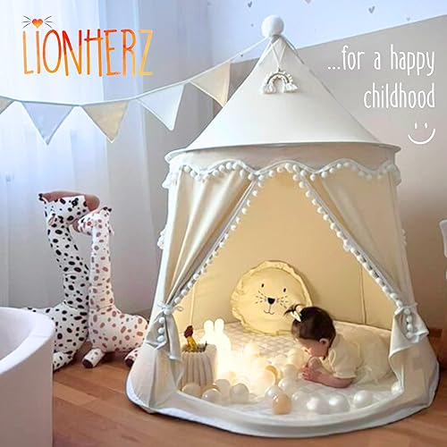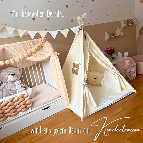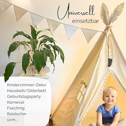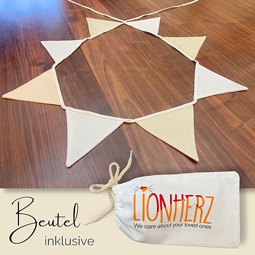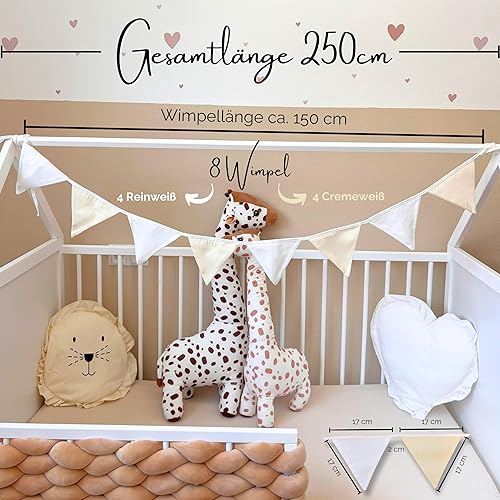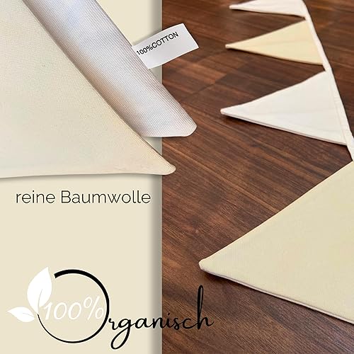 LIONHERZ® Guirlande de fanions de 250 cm en 100 % coton crème/blanc [double couche] avec sac | Guirlande en tissu beige avec 8 fanions | Décoration pour chambre d'enfant, anniversaire, carnaval,