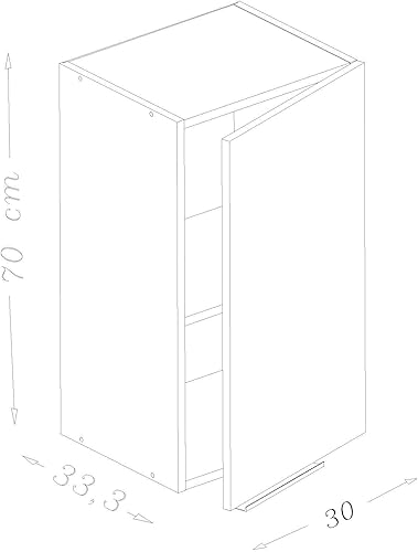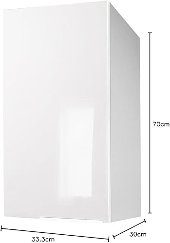 Berlenus CP3HB Meuble Haut de Cuisine avec 1 Porte Blanc Haute Brillance 30 x 34 x 70 cm