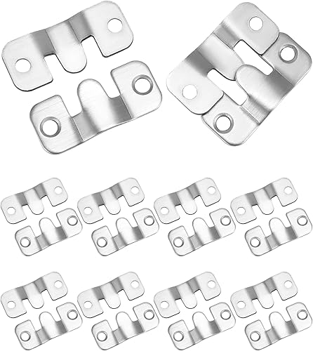 QWORK® 10 paires crochets imbriqués en acier inoxydable, crochets pour tableaux, crochets de suspension pour miroir, connecteurs de meubles - 44x19mm