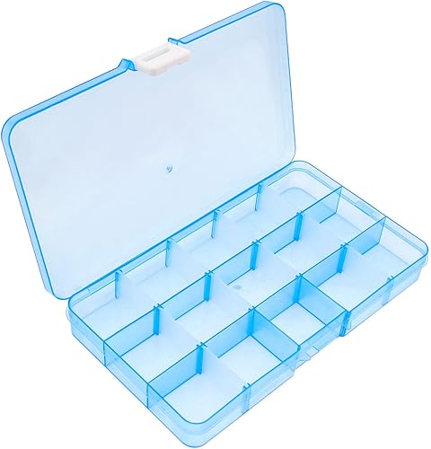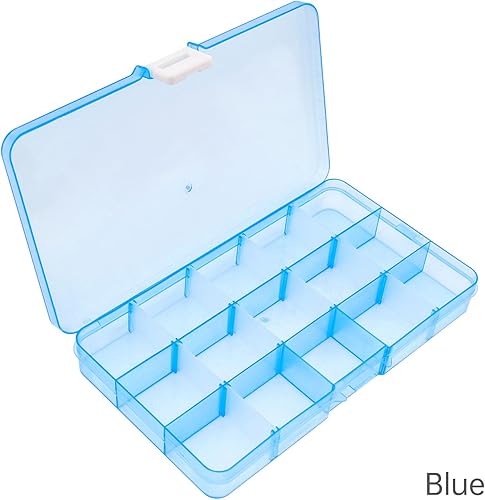 OriGlam 1 boîte de rangement en plastique avec séparateurs réglables, boîte de rangement pour bijoux, fournitures de bureau, perles, artisanat, pêche (bleu)