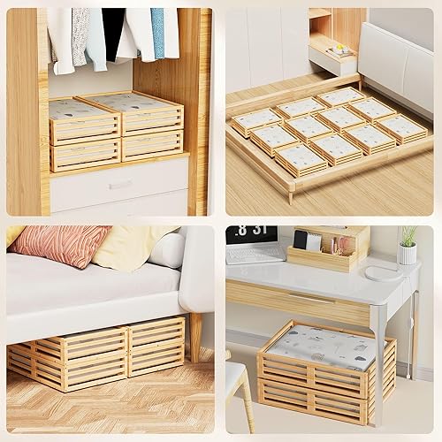 Lot de 2 boîtes de rangement sous le lit en bambou avec roulettes avec sac à poussière de grande capacité, organiseur de rangement à roulettes en bois robuste à rouler sous le lit (nature, 2 paquets