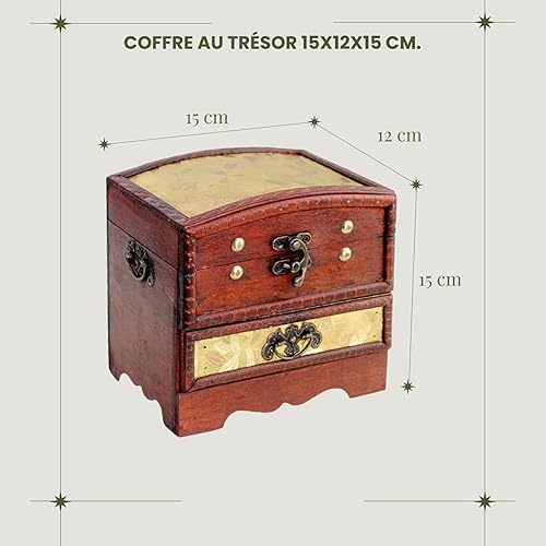 Brynnberg Boîte de Rangement Coffre au Trésor - Bois et en Métal - Design Vintage Unique, Fabriquée à la Main avec Un verrou Devant - Élément Décoratif Impressionnant - Lionshead 33x23x24cm