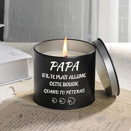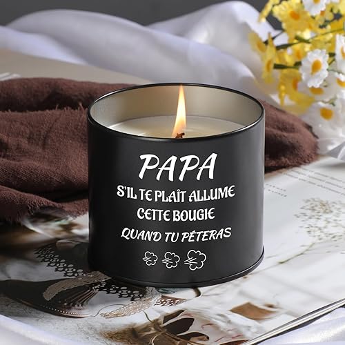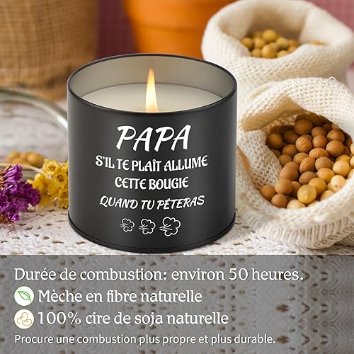 Cadeau Papa, Cadeaux Anniversaire Papa, Cadeau Fete des Peres Bougies Parfumées Dans des Pots en Métal, Cadeaux pour Pere Original, Idée Present Pere Noel