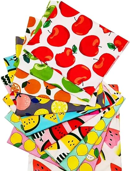 CraftsFabrics Lot de 10 tissus en coton sergé imprimé série fruits 25 x 25 cm pour matelassage, scrapbooking, projets de bricolage, collage, patchwork