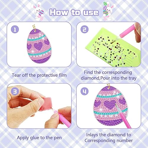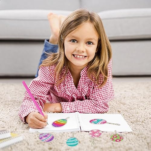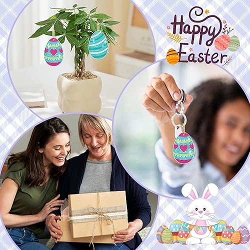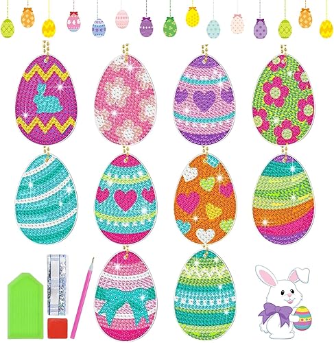ARTGUTS Lot de 10 peintures diamant œufs de Pâques - Peinture diamant 5D pour enfants et porte-clés - Thème Pâques - Porte-clés