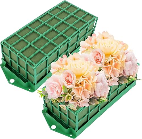 CYEER Lot de 2 mousses florales pour fleurs avec grille 30 x 12 x 8 cm - Mousse pour fleurs fraîches - Briques pour arrangements floraux - Pour arrangements floraux, mariage, décoration de voiture