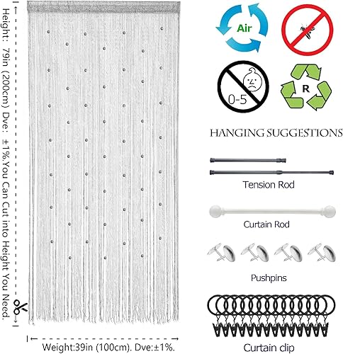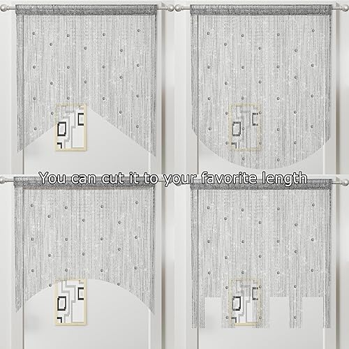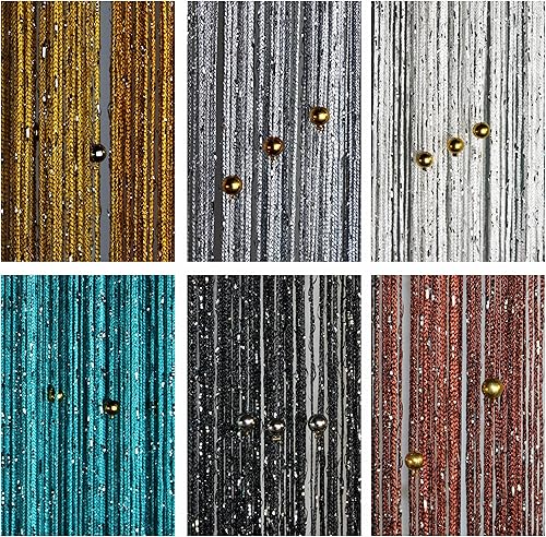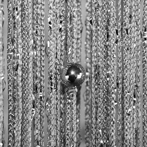 Atsweetlife Rideau à ficelles avec perles à suspendre - Séparateur de pièce - Décoration hippie à paillettes - Pour porte de placard - Style bohème - Argenté
