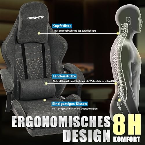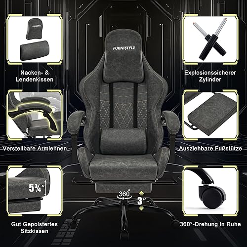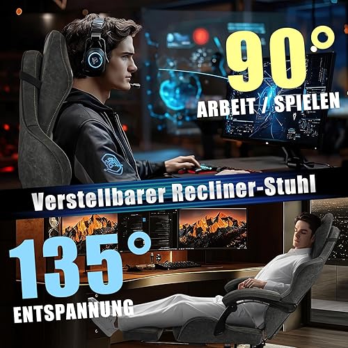 Hellove Chaise Gaming avec Repose-Pieds, Fauteuil de Jeu avec Appui-tête Ergonomique, Soutien Lombaire Réglable, Accoudoirs Synchronisés, Chaise de Bureau pour Gamer et Travail, Cuir PU Vert