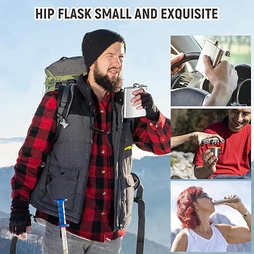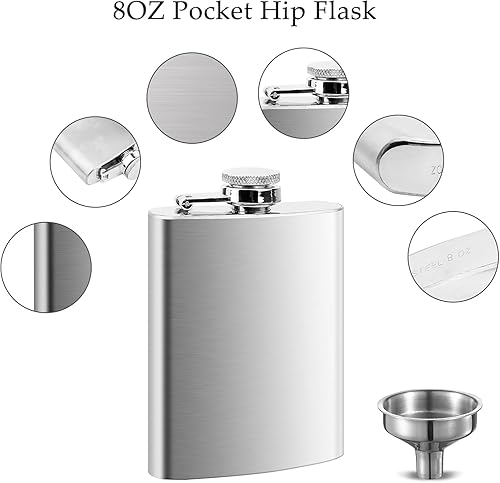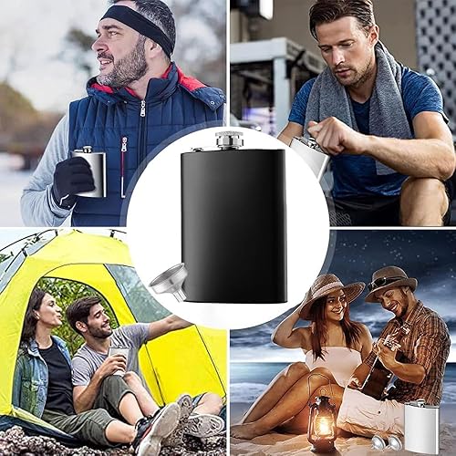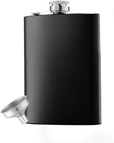 Flasque en acier inoxydable, 227 ml/8 oz, avec entonnoir, en acier inoxydable, adaptée au transport d'alcool, flasque de poche pour whisky, rhum, vodka, adaptée à la randonnée et aux fêtes, noire