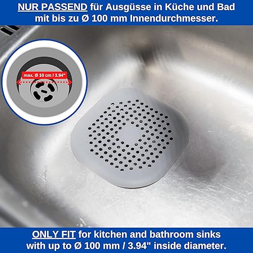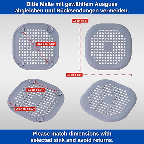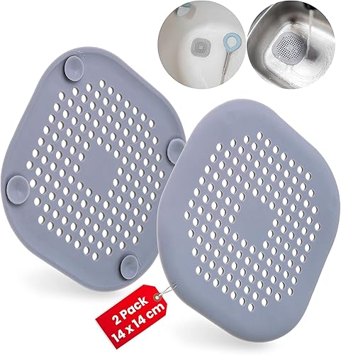 Crépine de vidage Universelle, 2 pcs, en Gris, en TPR, Ø 14 x 14 cm, avec 4 ventouses pour Une Bonne Tenue, pour Les vidages jusqu'à Ø 10 cm, crépine de vidage évier, lavabo, Baignoire, Douche