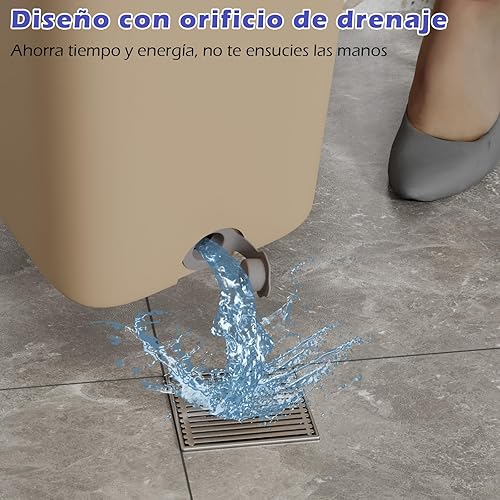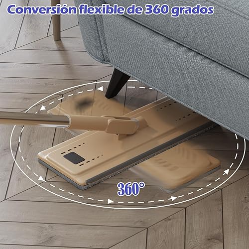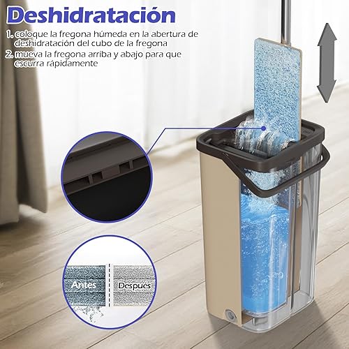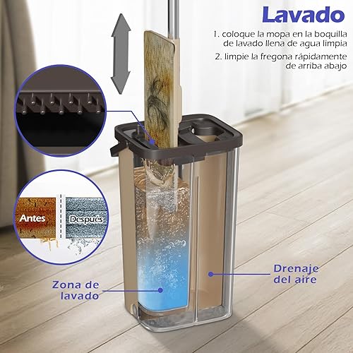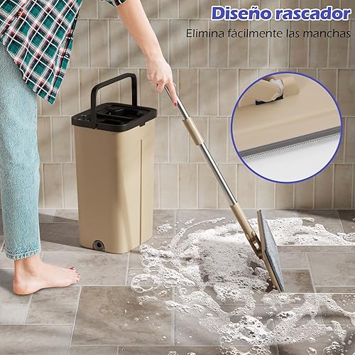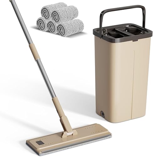 Eukue Serpillère Seau Essoreur, Serpillière Plat Microfibre avec 5 Serpillères Réutilisables, Serpillère et Seau Essoreur avec Manche INOX, Serpillère Seau Balais Nettoyer Sol(Brun)