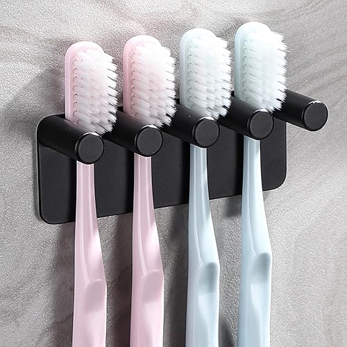 Dvocel Porte Brosse à Dents Électrique Support Mural Porte Brosse à Dents Électrique en Acier Inoxydable Brosse Porte a Dent Autoadhésif pour 4 Brosses à Dents Électriques pour Salle de Bain Noir