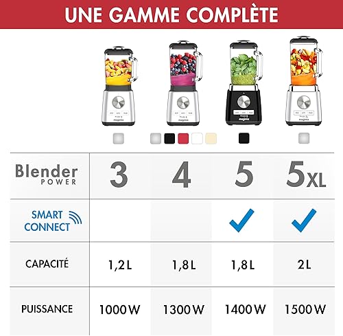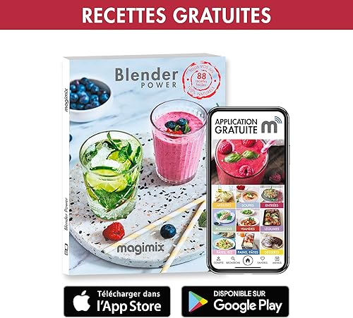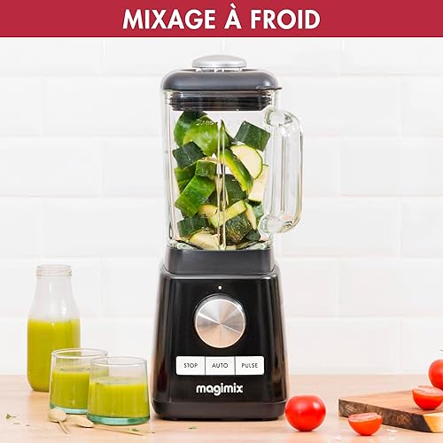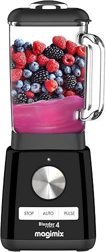Magimix Blender Power Mixeur Professionnel 4 - Blender Électrique, Hachoir, Mixeur pour Smoothie, Hachoir Robot Multifonction - Bol en verre - Noir