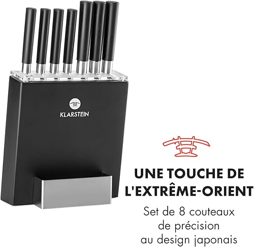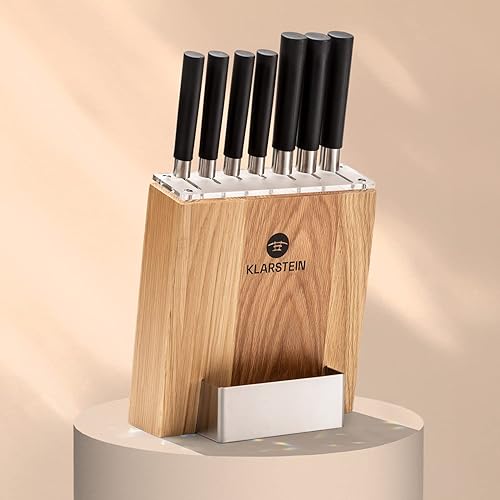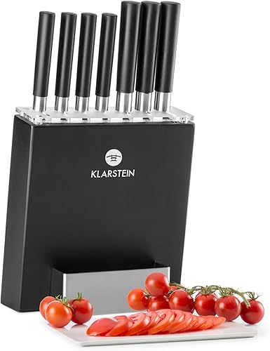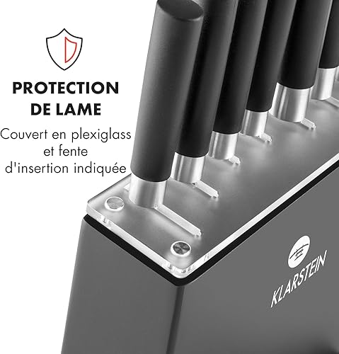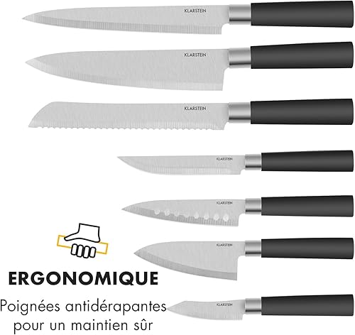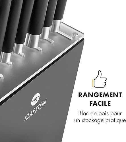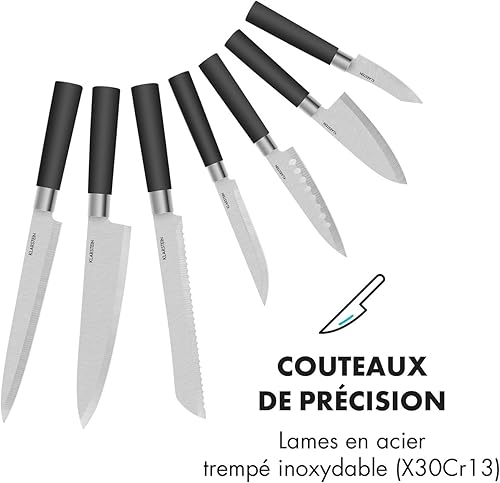 Klarstein Couteau Cuisine, Lot 7 Couteau de Cuisine Professionnel avec Bloc, Set Couteaux et Ustensiles de Cuisine en Acier Inoxydable, Kit Support Blocs Couteaux Professionnelle, Résistants Rayures
