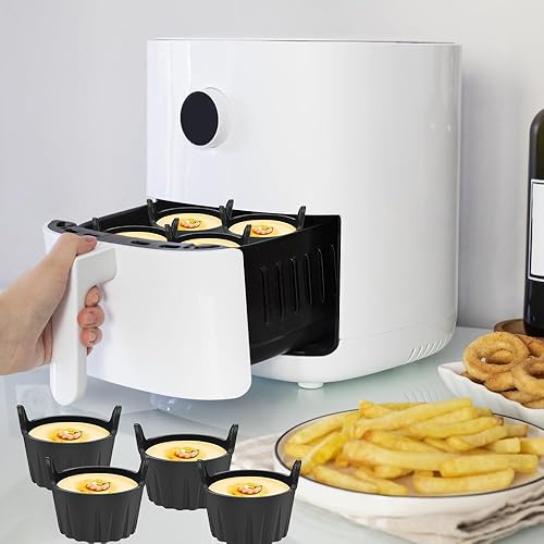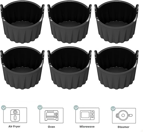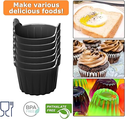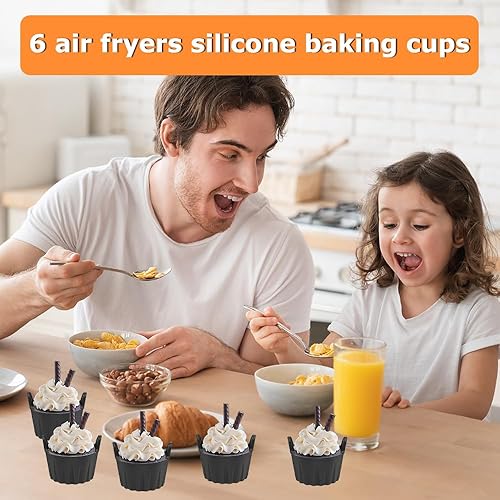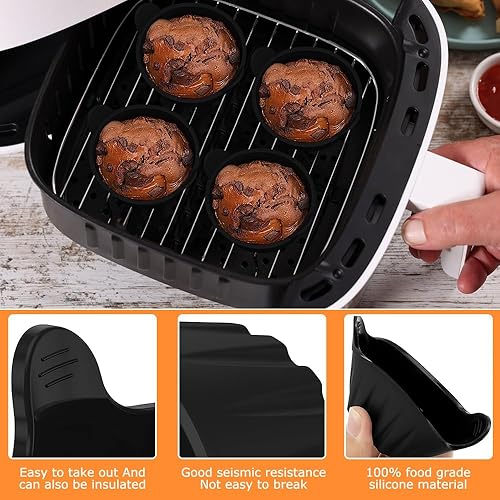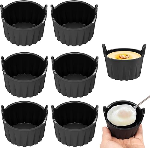 KBIBCK 6PCS Moule Silicone Air Fryer, Ramekins for Air Fryer, Ramequins pour Friteuse à Air, Moule Air Fryer Réutilisable Plat, Cuit Oeuf Micro Onde Moule for Air Fryer pour Pâtisseries,Muffins (Noir)