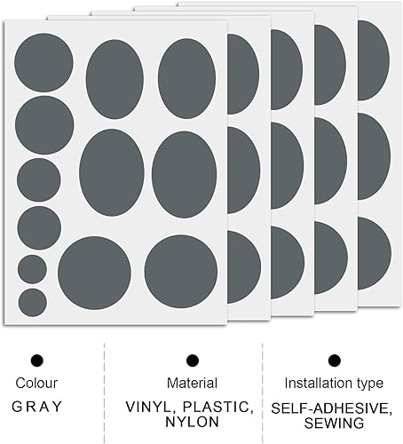60pcs/5 Feuilles Patchs de Réparation Doudoune, Patch Tissu Nylon Autocollant Forme Ronde et Ovale Ruban Réparation Lavable Vêtements Extérieur pour Manteaux, Tentes, Vêtements (Gris)
