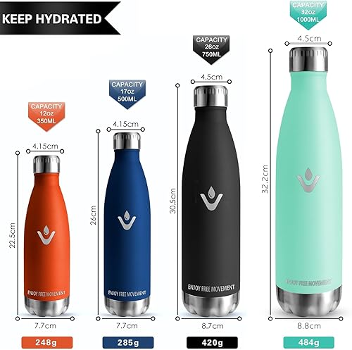 Vikaster Gourde isotherme, 1l Gourde, Sans-BPA Gourde inox, Etanche bouteille Approprié & Adulte, Sport, Gym, école, Extérieur, 1000ml Bleuvert