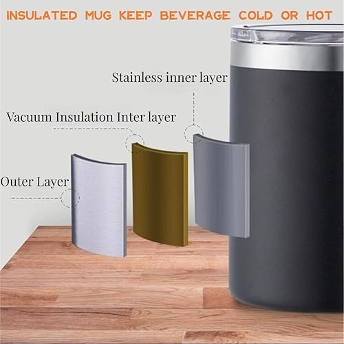 Gteller Tasse à café de 355 ml avec poignée, double paroi isotherme en acier inoxydable pour garder au chaud et au froid (bleu marine)