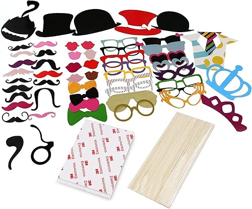 Accessoires Photo Kit Selfie Accessoires Décoration pour Mariage Anniversaire Graduation Party 58 pièces