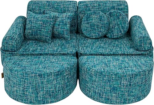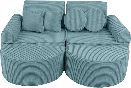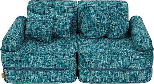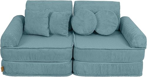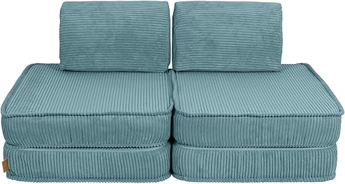 MEOWBABY Canapé Enfant Convertible - Mini Canapé Modulable et Chauffeuse Enfant Pliable pour Chambre - Canape Enfant Dépliant et Confortable, Aesthetic, Turquoise