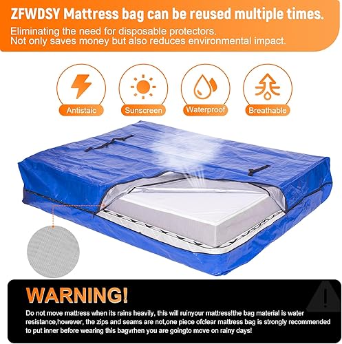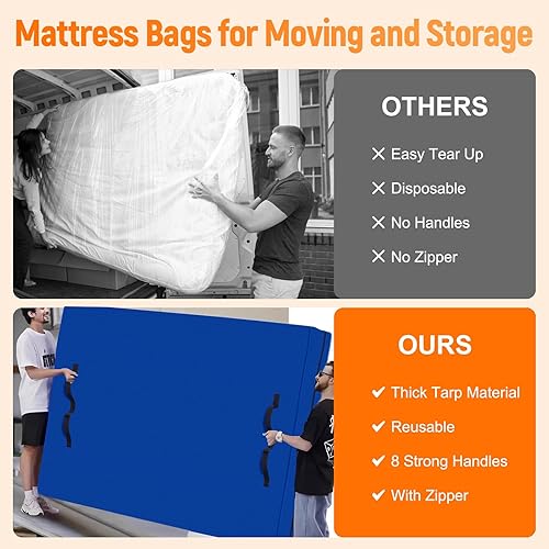 Housse de Protection pour Matelas Équipée de 8 Poignées Renforcées et d'une Fermeture Éclair - Idéale pour Le Rangement, Le Stockage et Les Déménagements