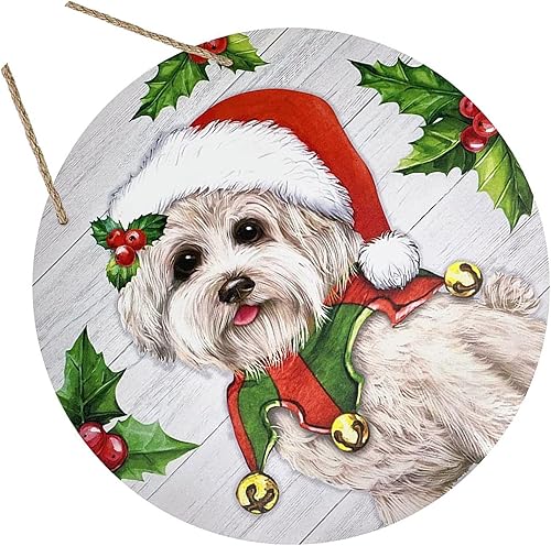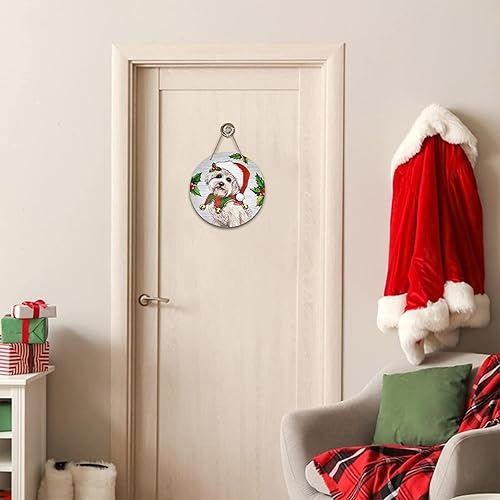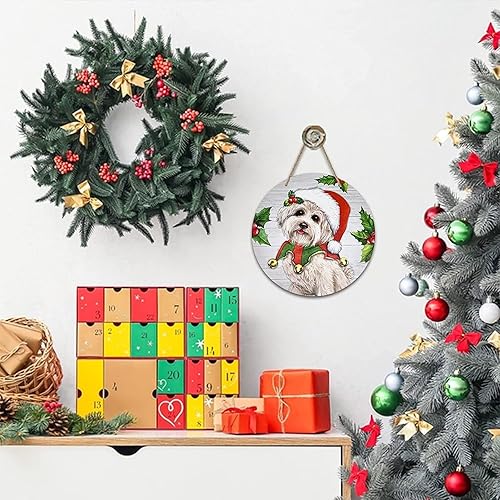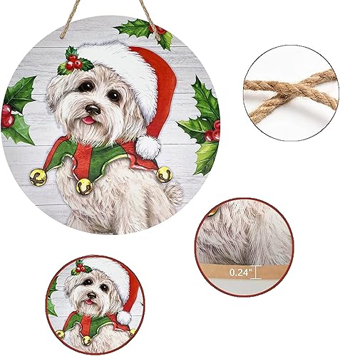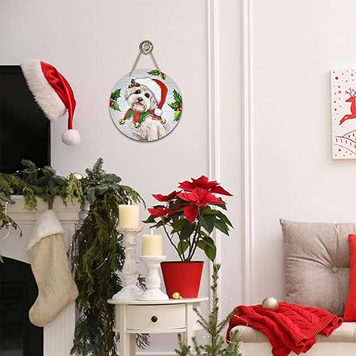 KACCDE Couronne de chien de Noël - Décoration de porte d'entrée festive en bois - Décoration murale d'intérieur pour le Nouvel An 2024